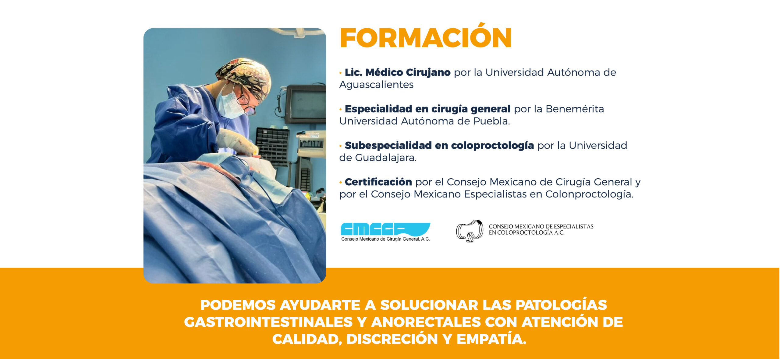 Es un especialista en cirugías de colon y de recto, se encarga del tratamiento quirugico de enfermedades que se realcionan con el intestino delgado, el cólon, el recto y el ano, se ocupa del diagnóstico y el tratamiento médico de la mayoría de ellas.